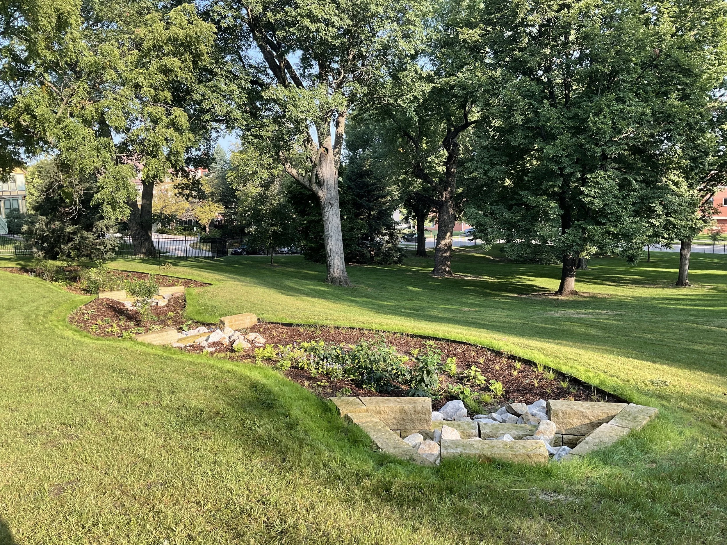 The design integrated stormwater management solutions that balanced community needs with environmental responsibility. Because additional impervious surfaces were introduced as part of the development, JBC incorporated underground stormwater detention chambers, as well as surface bioretention cells, to slow runoff, reduce volume, and promote infiltration. These systems enhanced both the ecological performance of the site and its long-term resilience.