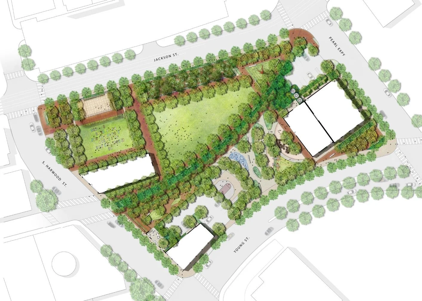 Engaging the neighborhood was another critical aspect of the project. JBC hosted public meetings where community opinion was initially divided, but through dialogue, design revisions, and persistence, the project gained strong support. Today, the park is well-received and actively used, reflecting its success as a community asset. Beyond the open space and event lawn, JBC also designed an age-appropriate playground for the childcare center housed in the former rectory, further extending the site’s value to local families.