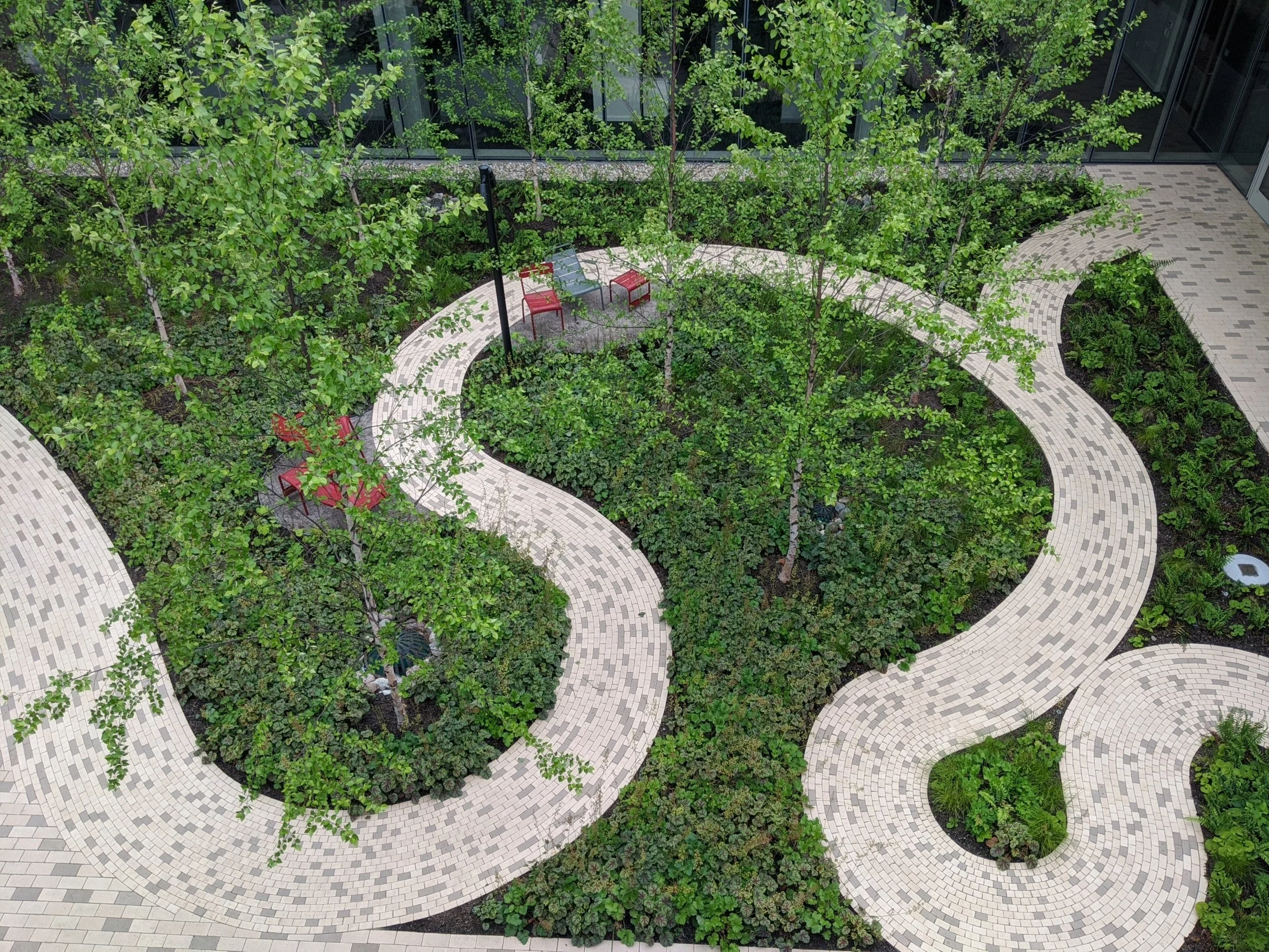 /The Steeple Square project in Dubuque, Iowa, represents a transformative effort to bring new life and purpose to a historic property while serving the surrounding community. The project centers on the former St. Mary’s Church, which was decommissioned and renovated by Gronen Restoration into a vibrant community event center. JBC, serving as lead landscape architect and designer, was tasked with creating an outdoor environment that not only complemented the event center, but also provided much-needed green space and recreational opportunities for an underserved neighborhood.