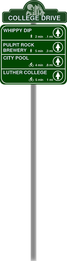 Current wayfinding signs are inconsistent, so the design process focused on finding a style the community could proudly show on their roads and trails before creating entire families of signs. These signs will be displayed on street lights, trailheads, roadsides and sidewalks, so elements must be easily repeated in a variety of sizes.
