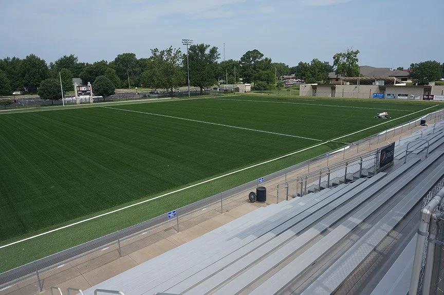 JBC Landscape Architects conducted a comprehensive analysis for the Topeka Unified School District 501 to guide the replacement of synthetic turf at Hummer Sports Park, one of the state’s premier high school athletic venues. A primary challenge of the project was preserving and repairing the 12-year-old resilient shock pad during demolition and installation of the new surface, ensuring the field maintained its high-performance qualities for athletes. JBC provided oversight and quality control throughout the installation process, including evaluation of base preparation, infill distribution, and G-Max testing to verify safety and performance standards.