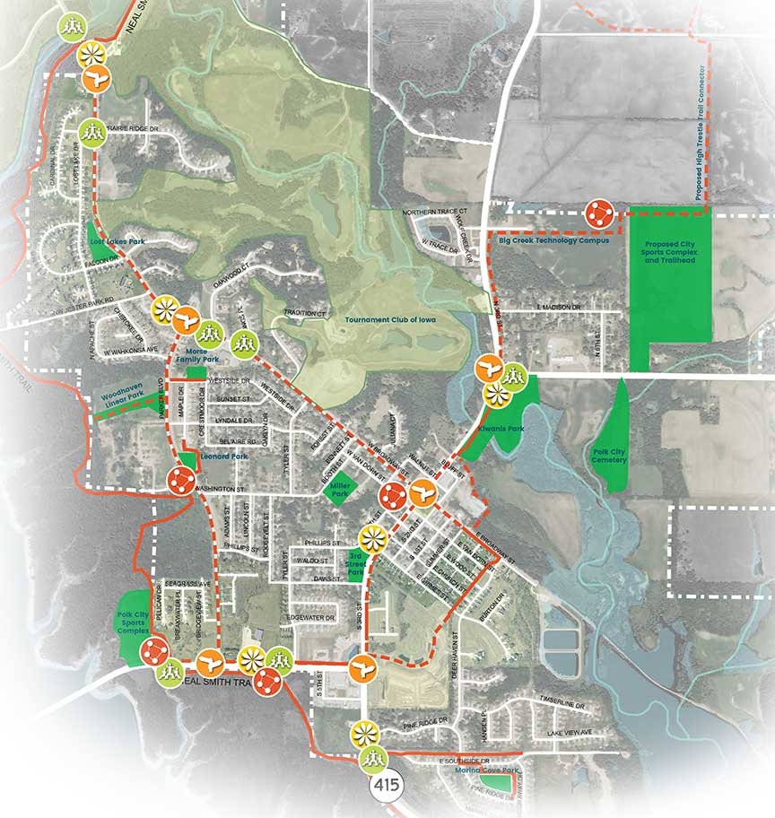 The resulting vision provides Polk City with a clear, actionable roadmap for phased implementation, supporting connectivity, recreational access, and community identity while reinforcing the city’s natural and cultural assets.
