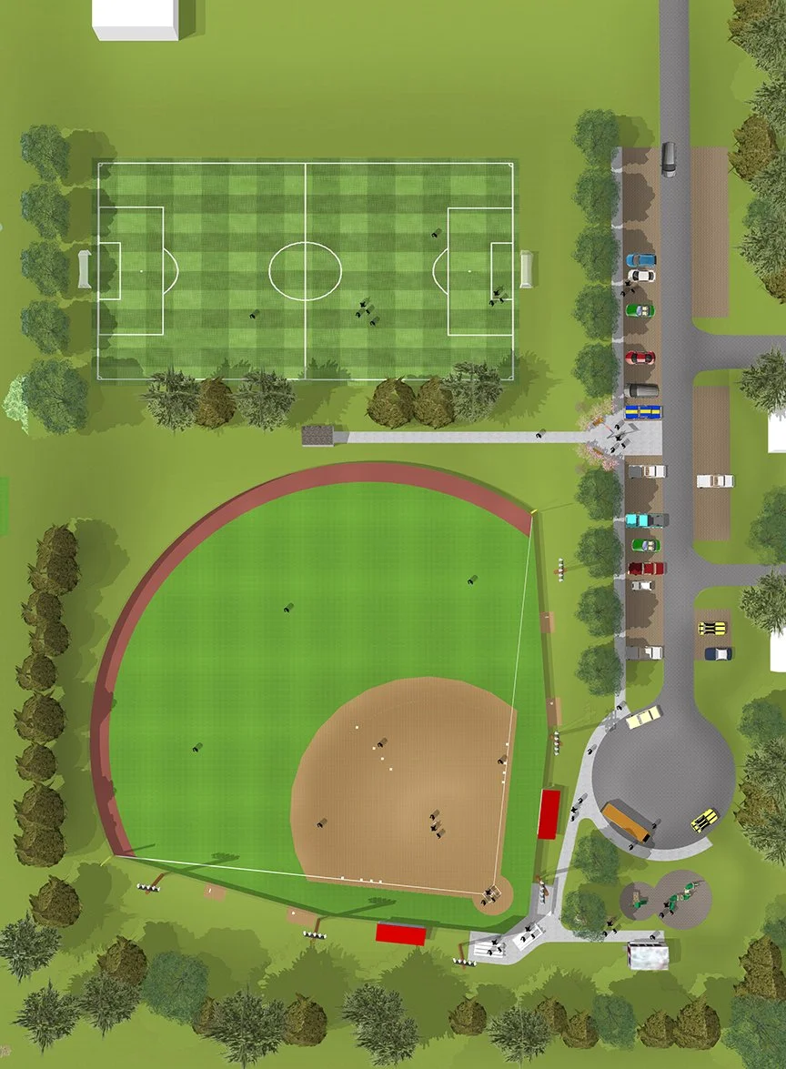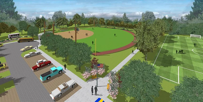 Through these conversations, the steering committee identified several priority areas: enhancing the sidewalk system, improving pedestrian safety, updating signage and wayfinding, and exploring opportunities for economic development. These community goals informed a coordinated set of concept plans, including walking trail opportunities, recreational amenities, sidewalk upgrades, signage strategies, and visual quality improvements along key corridors.
