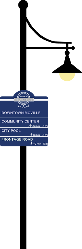 Moville, Iowa is a small commuter community outside of Sioux City. As part of the Iowa's Living Roadways Community Visoinig Program, JBC provided conceptual wayfinding signage planning and design for the town of Moville. The primary objective was to establish community identity by highlighting businesses and community amenities with vehicular and pedestrian signage.