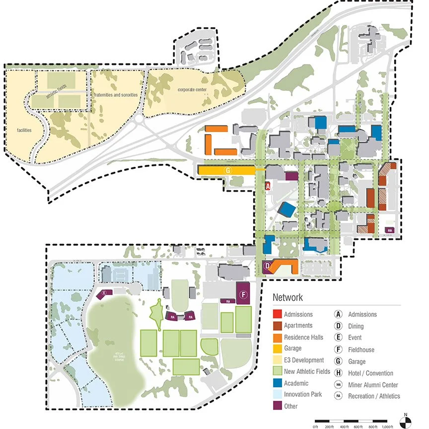 As part of the master planning process, JBC facilitated targeted interviews with Facilities Operations and the Director of Athletics to identify long-term opportunities for campus athletic and recreation areas. These conversations revealed a clear need for a unified vision for MU S&T’s athletic district.